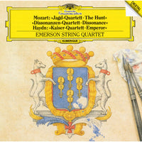 快活な主題が狩猟を連想させるために標題が付された、平明快活な曲想で人気の高い《狩り》。冒頭にきわめて大胆な和声効果を持つ序奏が置かれているところから、タイトルが付けられた《不協和音》。第2楽章の変奏主題に歌曲〈皇帝賛歌〉を用いたところから、この愛称が冠せられた《皇帝》。ハイドンとモーツァルトの弦楽四重奏曲の名作を、エマーソン弦楽四重奏団が息の合った見事なアンサンブルで心を込めて奏でてゆきます。