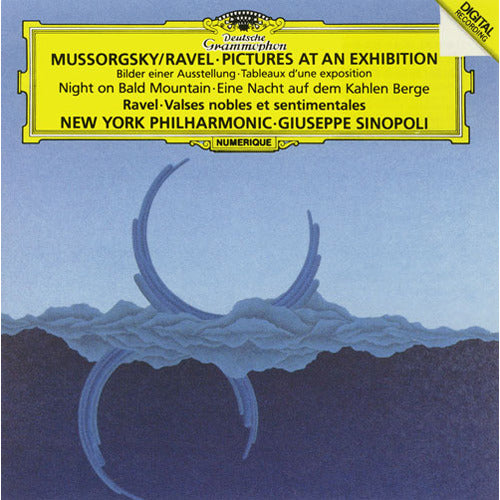 ムソルグスキーのピアノ曲をラヴェルが卓越した管弦楽技法を駆使して色彩的な作品に編曲した《展覧会の絵》は、現在では原曲以上にポピュラーになっています。聖ヨハネ祭の夜に集う悪魔や妖怪たちの饗宴を描いた《はげ山の一夜》と、ラヴェルがシューベルトのワルツを範として書いた《高雅にして感傷的なワルツ》をカップリング、シノーポリが名門ニューヨーク・フィルハーモニックから多彩にして華麗な響きを引き出しています。