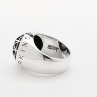 2019年に発売された最新アルバム『We Are Not Your Kind』をテーマに、ガーネットカラーの石を魔法陣ロゴの中に埋め込んだデザインで、さらにその中心にはバンドの頭文字である「S」を部族調にデザインした象徴的ロゴを非常に緻密に配し、サイドにアルバム・タイトルが刻まれています。