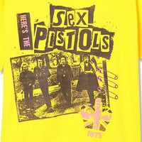 セックス・ピストルズのバンドフォトを使用したアートTシャツ。カラーバリエーションで個性を楽しめる一枚。