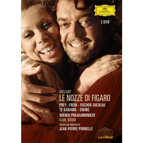 ベームの指揮でフレーニやフィッシャー=ディースカウ、プライらが歌う。ため息が出そうな理想的なキャストによる「フィガロの結婚」。ポネルの優美な演出、テ・カナワの美しい伯爵夫人も見もの。
