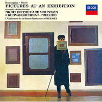 ロシアの作曲家ムソルグスキーのピアノ曲を、フランス近代を代表する作曲家のラヴェルが、管弦楽の粋を凝らして編曲した《展覧会の絵》。現在では原曲以上にポピュラーになっているこの作品を、色彩的な作品の演奏には定評あるアンセルメが指揮した名盤です。《はげ山の一夜》と〈モスクワ河の夜明け〉も収録しています。