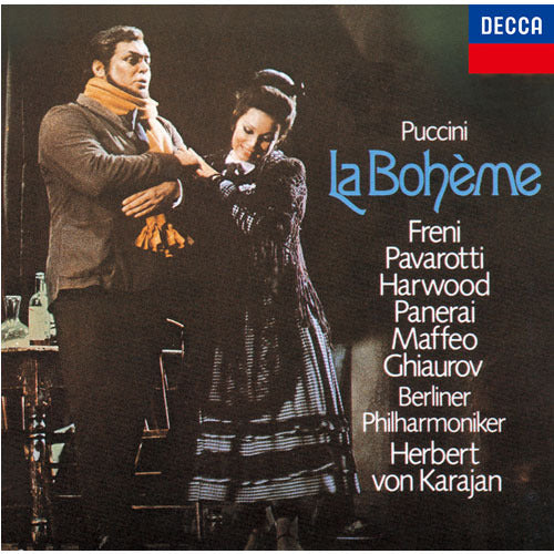 - 演奏者 [ミミ]ミレッラ・フレーニ(ソプラノ)、[ロドルフォ]ルチアーノ・パヴァロッティ(テノール)、[ムゼッタ]エリザベス・ハーウッド(ソプラノ)、[マルチェルロ]ローランド・パネライ(バリトン)、[コルリーネ]ニコライ・ギャウロフ(バス)、[ショナール]ジャンニ・マッフェオ(バス)他、シェーネベルク少年合唱団、ベルリン・ドイツ・オペラ合唱団