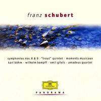 シューベルトの2曲の交響曲とピアノを用いた作品3曲を収録したアルバムです。《未完成》と《ザ・グレート》はベームとベルリン・フィルハーモニーによる《シューベルト交響曲全集》のための録音。ベームは後年他のオーケストラとこれら2曲を再録音していますが、このベルリン・フィルハーモニーとの演奏の価値は現在でも少しも揺らぐことがありません。ギレリスとアマデウス弦楽四重奏団の《ます》、ケンプの《楽興の時》はいずれもドイツ・グラモフォンの名録音のひとつに数えられるものです。