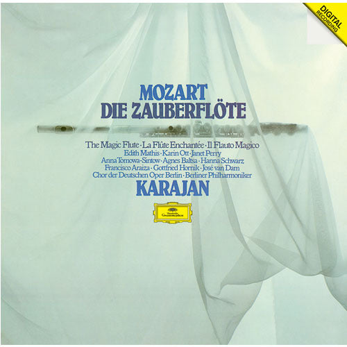 - 演奏者 [ザラストロ]ジョゼ・ヴァン・ダム(バス)、[夜の女王]カーリン・オット(ソプラノ)、[パミーナ]エディット・マティス(ソプラノ)、[タミーノ]フランシスコ・アライサ(テノール)、[パパゲーノ]ゴットフリート・ホーニク(バリトン)、[第一の侍女]アンナ・トモワ・シントウ(ソプラノ)、[第二の侍女]アグネス・バルツァ(メッゾ・ソプラノ)、[第三の侍女]ハンナ・シュヴァルツ(アルト)他、ベルリン・ドイツ・オペラ合唱団